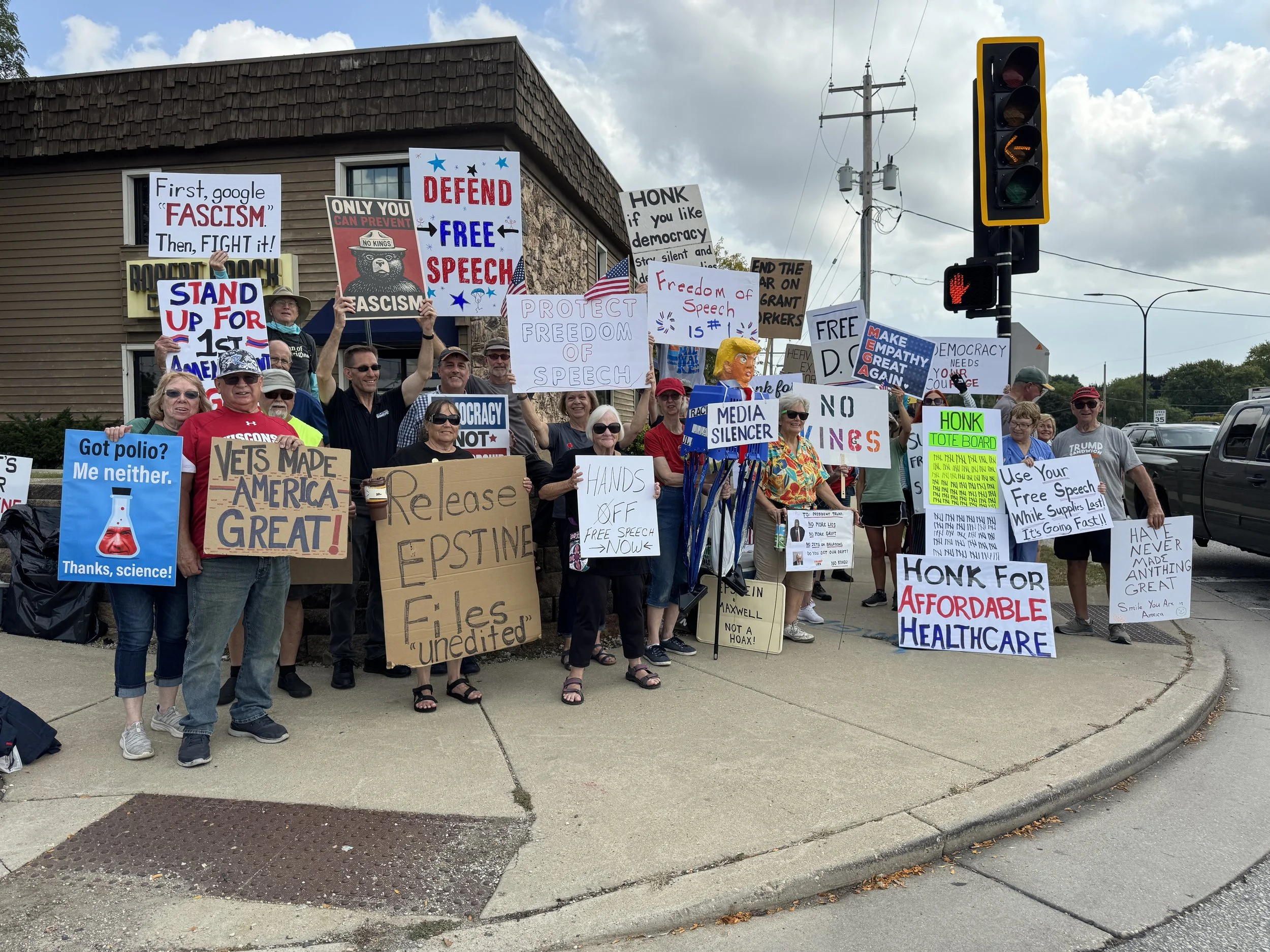 Meeting every week, BOW plans events, organizes rapid responses when needed, makes phone calls, educates themselves and others on issues, interviews candidates, hosts a weekly protest on the corner of 76th and Layton in Greenfield on Saturday mornings and remembers to have fun.